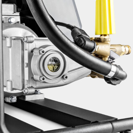 Die neu entwickelte 3-Kolben-Axialpumpe mit gehärteten Edelstahlkolben ist das Herzstück unserer leistungsstarken Motor-/Pumpeneinheit HD 6/15 M St mit Wechselstrommotor. Sie ermöglicht eine um bis zu 20 Prozent gesteigerte Energieeffizienz und Reinigungsleistung, garantiert hohe Standzeiten und sorgt mühelos für einen Arbeitsdruck von 150 Bar. Zum Schutz der Pumpe ist ein Wasserfeinfilter, der zuverlässig Schmutzpartikel aus dem Brauchwasser entfernt, eingebaut. Auch die automatische Druckentlastung schützt Pumpe und weitere Hochdruckkomponenten vor möglichen Belastungen im Stand-by-Betrieb. Darüber hinaus ist das Mittelklassegerät extrem service- und anwenderfreundlich aufgebaut, sodass alle wichtigen Komponenten einfach erreicht werden können. Ob stehender und liegender Betrieb: Für eine einfache vertikale Montage an Wänden (oder horizontal als Einbaugerät) befindet sich eine clevere 3-Punkt-Aufnahme auf der Geräterückseite.