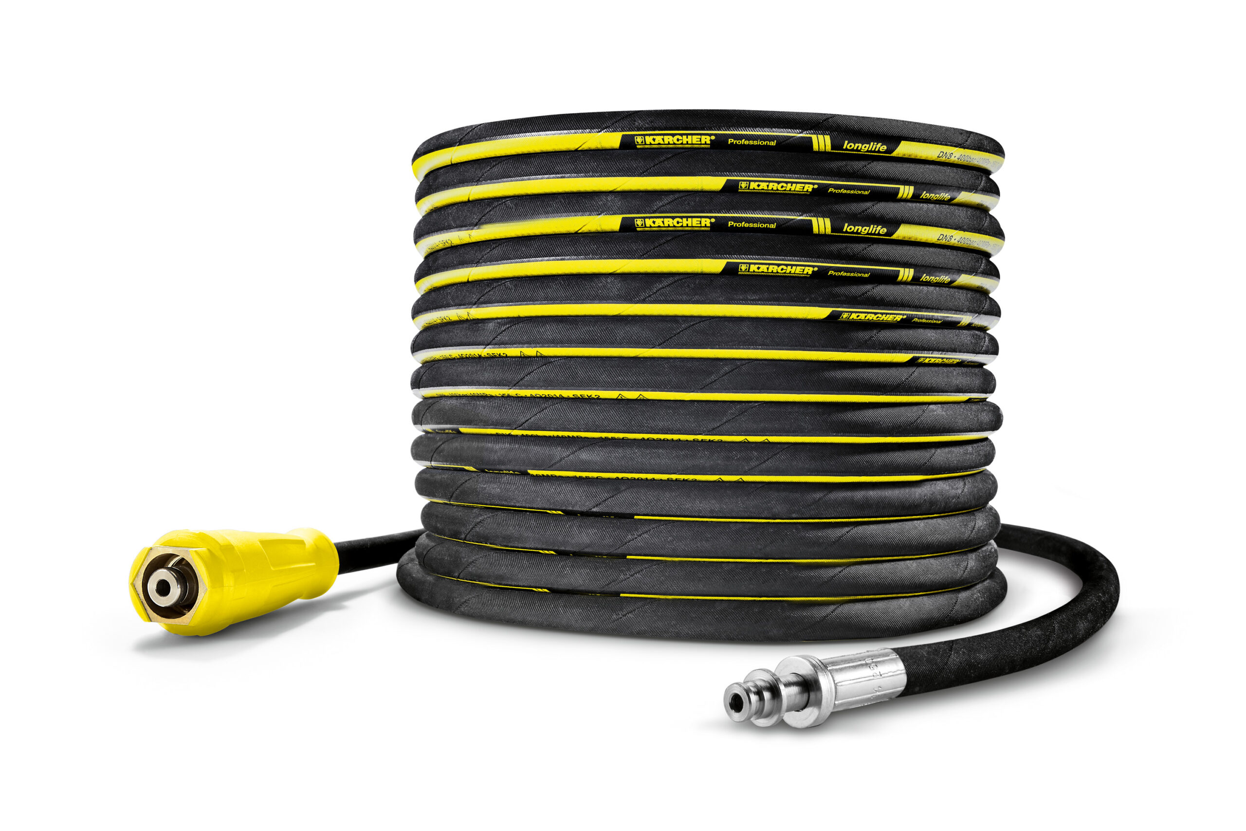 20 m Hochdruckschlauch (DN 8) für Drücke bis 400 bar. Mit AVS-Schlauchtrommelanschluss und 2-facher Stahleinlage. EASY!Lock-Handverschraubung auf der anderen Seite des Schlauchs.